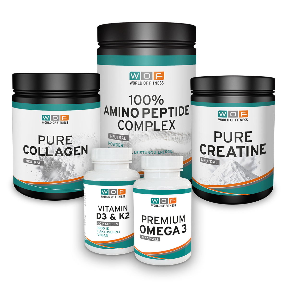 Das FIT+ Bundle ist deine umfassende Lösung für optimale Fitness- und Gesundheitsergebnisse. Diese sorgfältig zusammengestellte Kombination vereint eine 100% Aminosäure-Peptid-Mischung zur Muskelunterstützung mit hochwertigem Kollagen für Gelenke und Haut. Das 500g Kreatin-Pulver fördert Kraft und Ausdauer, während Vitamin D3 + K2 deine Knochengesundheit stärkt. Omega-3 rundet das Bundle ab und unterstützt dein Herz-Kreislauf-System. Alles, was dein Körper braucht – in einem praktischen Paket.